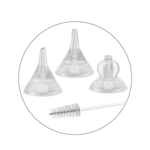 Ultra puha 3 szilikonhegy, amelyek a váladék típusához és a baba életkorához igazíthatók. Kiegészítõ tisztítókefe mellékelve. Garantált higiénia és a kicsik igényeihez igazodik.