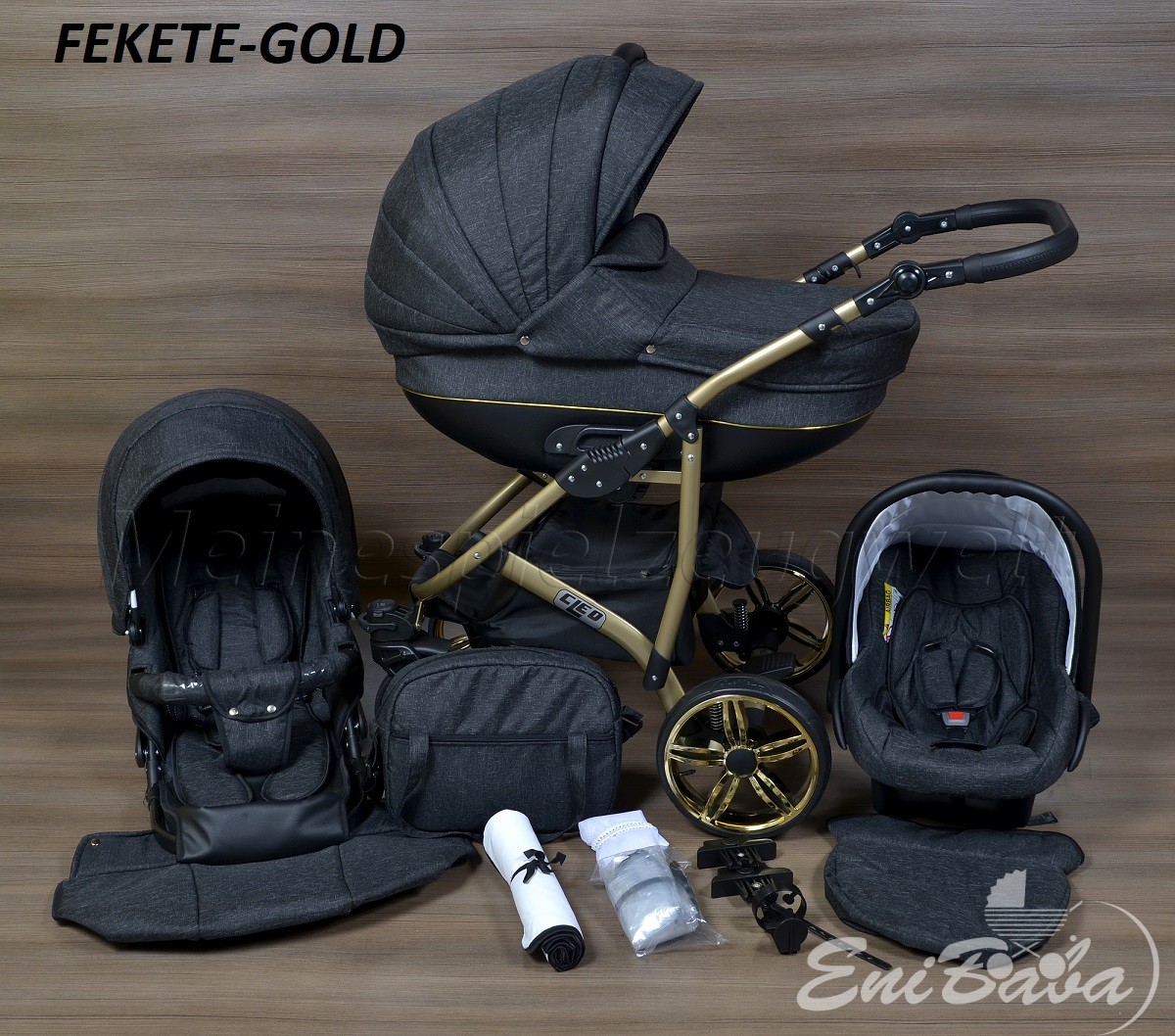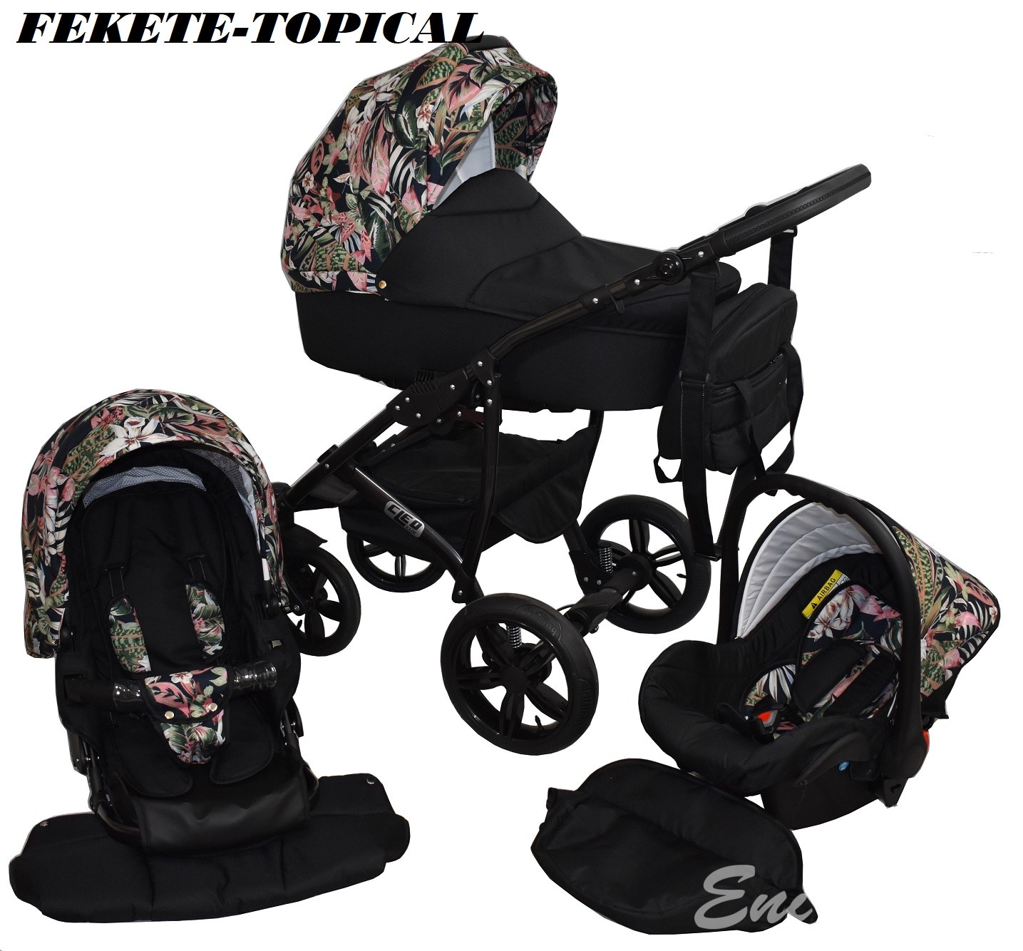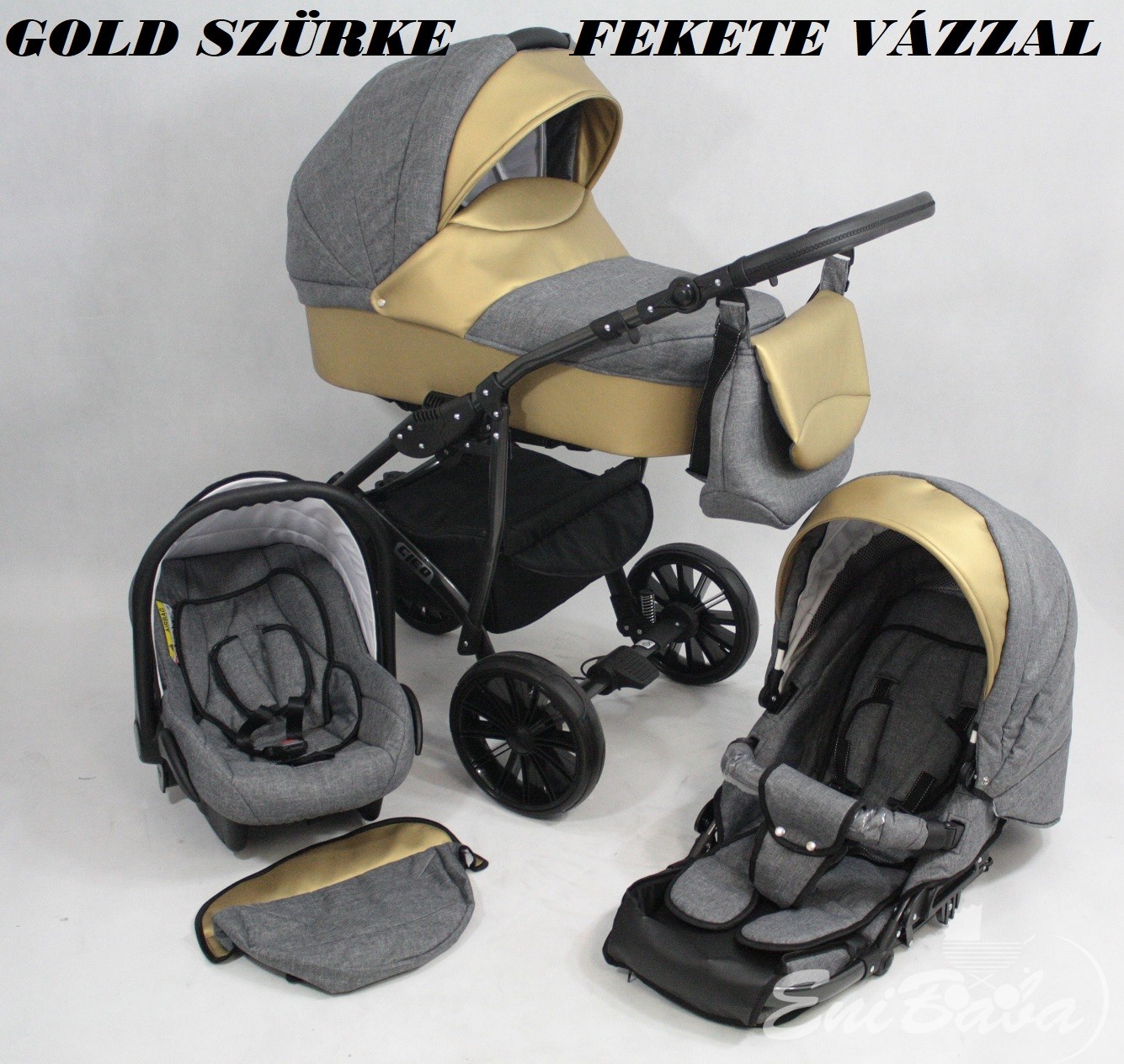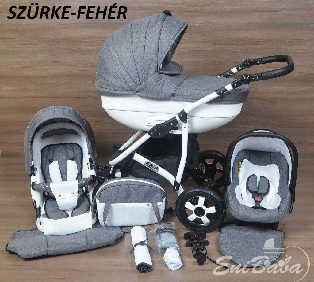 • Multifunkciós babakocsi: babakocsi vázszerkezet +mózeskosár+sportrész+autósülés babakocsi színével azonos.