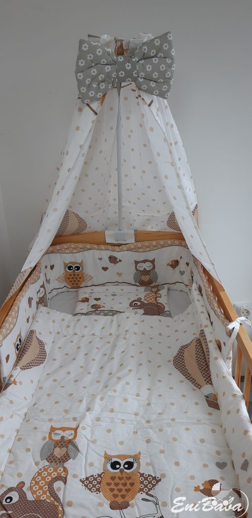 TAVASZI AKCIÓ! 4 részes BARNA BAGLYOS babaágynemű szett Készleten.