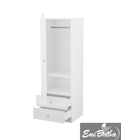 • Az ajtó mögött polcok és vállfaakasztó egyaránt megtalálható, alul két fiók segít abban, hogy minden dolog a helyére kerüljön.